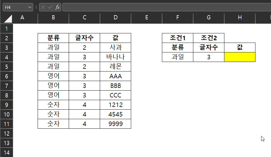 다중 조건을 만족하는 값 찾기