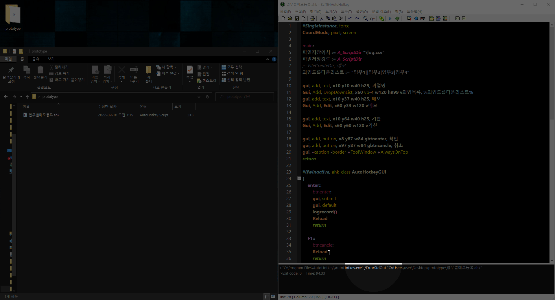 오토핫키로 쉽게 업무별 메모를 입력하고, 엑셀로 정리해주는 툴을 한번 만들어봤다 =)