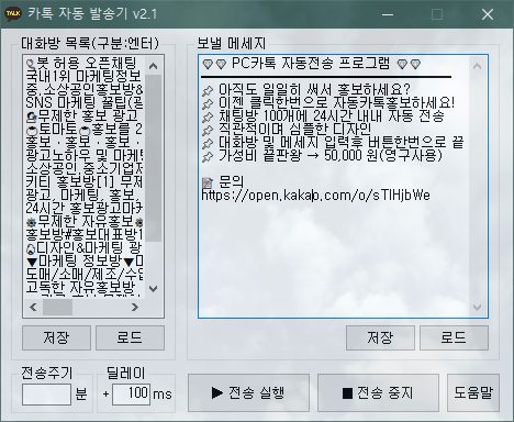- 메인 카카오톡 화면을 켜둔상태에서 실행하는것이 더 안정적으로 실행됨