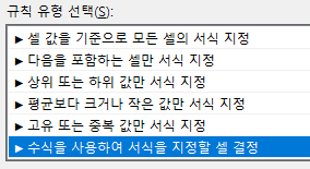 그 중에서 "수식을 사용하여 서식을 지정할 셀 결정" 유형에 대해 설명한다.